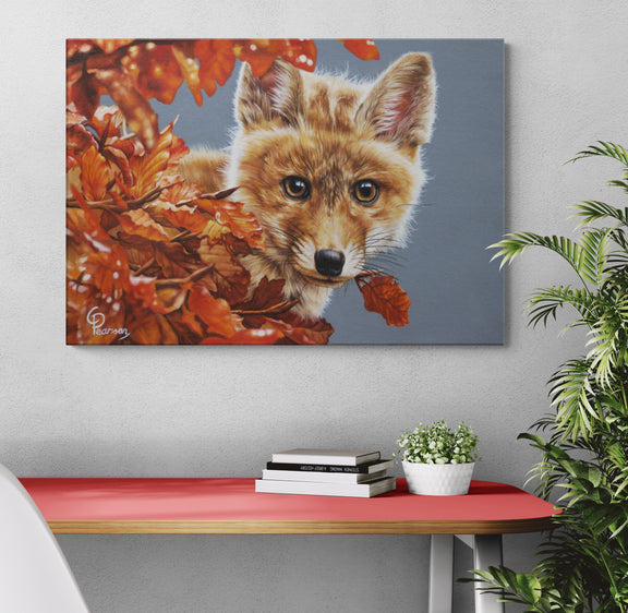 Transform your space with our stunning canvas print featuring Bright Eyes, the inquisitive little fox, brought to life with vibrant colors. This captivating artwork is part of Chris's signature wildlife series and makes a beautiful addition to any room.