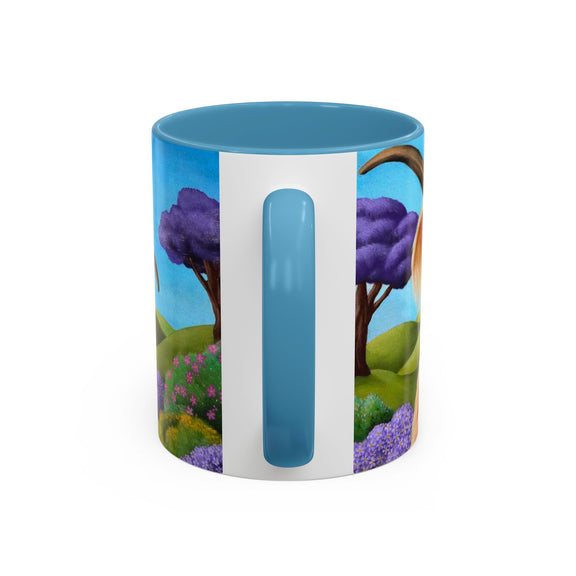 This beautiful ceramic mug is perfect for any event of the day. Your morning coffee, a hot chocolate, or any other hot beverage you enjoy. The mug is glossy white with a colored rim, inside, and handle. Colored rim, inside, and handle